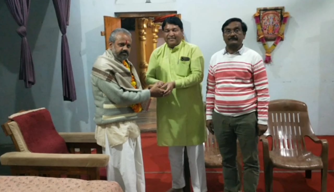 बैकुंठ धाम आश्रम के महंत का साल श्रीफल देकर नपासीएमओ नपाध्यक्ष ने किया विदा