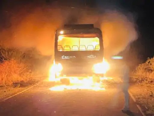 मतदानकर्मियों को ला रही बस में लगी आग : बैतूल के मुलताई में हादसा, 4 ईवीएम जलीं, पोलिंग टीम ने खिड़कियों से कूदकर जान बचाई