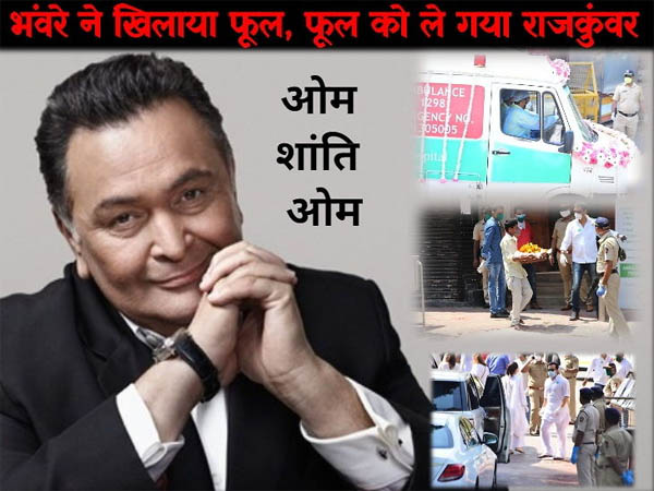 ऋषि कपूर का अंतिम संस्कार सिर्फ 10 मिनट में हुआ। कपूर बॉलीवुड की फर्स्ट फैमिली से ताल्लुक रखते थे और ऐसा पहली बार हुआ है, जब इस परिवार के किसी सदस्य का अंतिम संस्कार इतनी जल्दबाजी में किया गया।